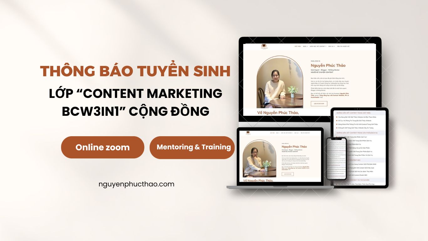 Kết nối thêm với mình tại facebook Thảo Nguyễn, group “Cộng đồng học viết Content Website, PR và Social Media” nhé!